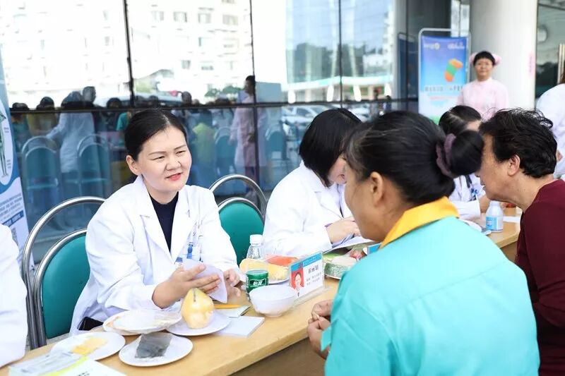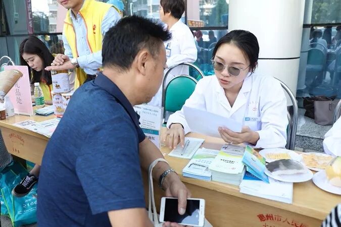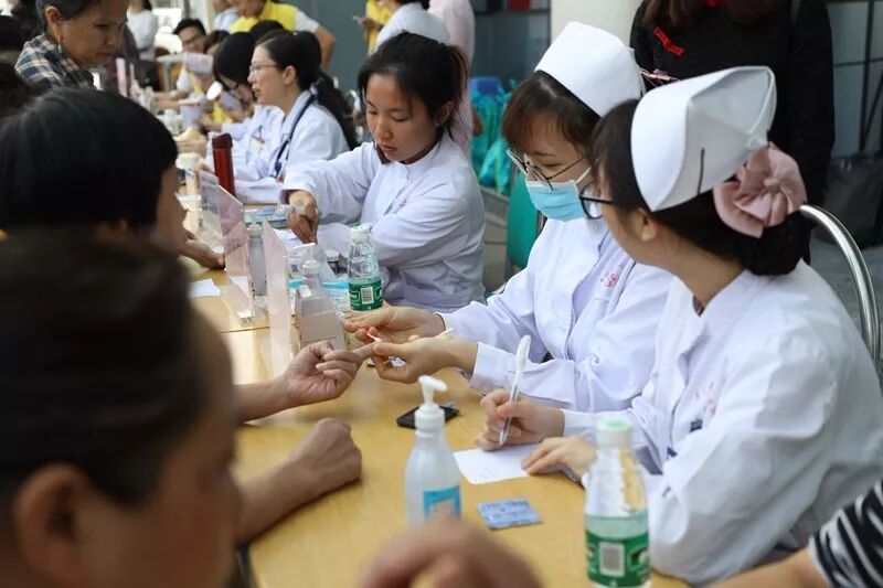 義診還沒開始,診臺(tái)前已經(jīng)排起了長(zhǎng)隊(duì),本次活動(dòng)由內(nèi)分泌科的李桂平主任醫(yī)師、門診部李緒嫻主任醫(yī)師、內(nèi)分泌科的崔麗娟博士、營(yíng)養(yǎng)科的鄭新金副主任醫(yī)師、健康管理中心曾利紅醫(yī)生聯(lián)合義診,現(xiàn)場(chǎng)安排了多名護(hù)士為市民免費(fèi)進(jìn)行測(cè)量血糖、血壓、血尿酸和體脂測(cè)定。