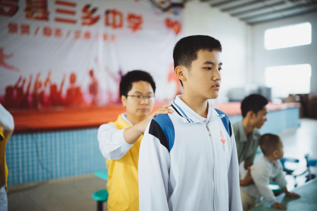 被注視的女孩在三鄉(xiāng)中學(xué),初一的一名女生引起了志愿服務(wù)團(tuán)隊(duì)的注意。就在團(tuán)隊(duì)醫(yī)生正在為其他同學(xué)檢查時(shí),該班級(jí)的班長(zhǎng)告訴醫(yī)生,班上就有一名女生“腰彎得厲害”。栗剛找到了班長(zhǎng)說(shuō)的這個(gè)女孩,大概是由于驚訝和緊張,她在原地局促不安地站著,“什么時(shí)候開(kāi)始出現(xiàn)這個(gè)情況?去哪里看過(guò)醫(yī)生了?”對(duì)于栗剛拋出的一連串問(wèn)題,女孩沉默了許久。