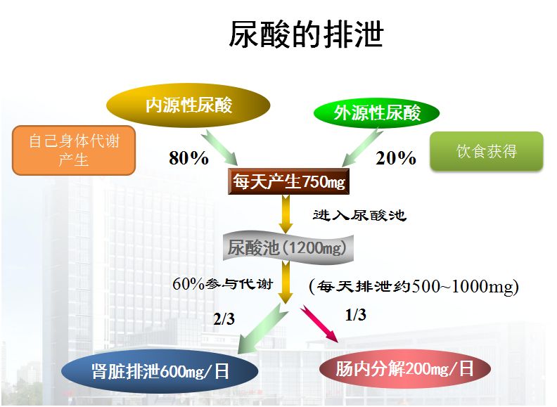 其實(shí),尿酸并不是完全由飲食獲得的,我們體內(nèi)有很多代謝可以產(chǎn)生尿酸。