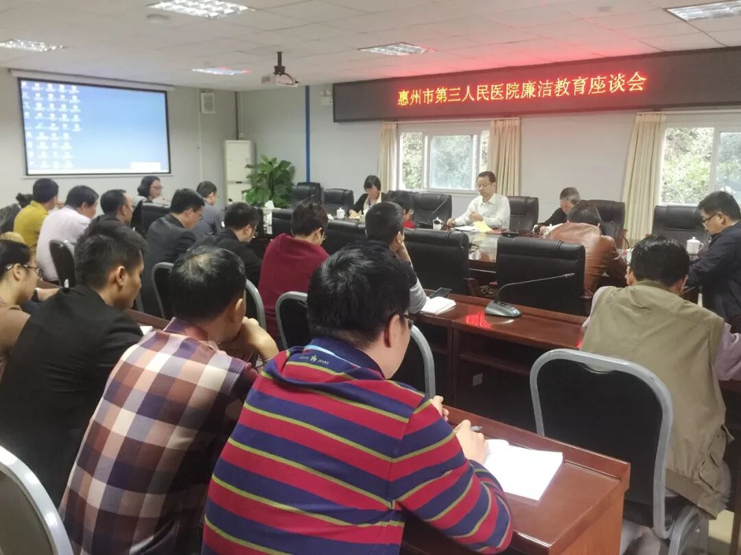 近日,惠州市第三人民醫(yī)院組織全院領(lǐng)導班子、科主任、敏感崗位和重點人員召開了廉政教育座談會。會議分兩個會場同時進行,分別由黨委鄧漢東書記、紀檢委員李瑞林院長助理主持。