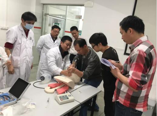 林醫(yī)生就心肺復(fù)蘇術(shù)、氣管插管、電除顫等急救技術(shù)一一進(jìn)行講解和操作示范。橋東社區(qū)衛(wèi)生服務(wù)中心的醫(yī)務(wù)人員輪流進(jìn)行了模擬實(shí)操,急救動手能力和操作技巧得到提升,順利通過初步考核,達(dá)到了預(yù)期的培訓(xùn)效果。接下來,惠州三院還將結(jié)合提升醫(yī)聯(lián)體成員單位服務(wù)能力組織系列培訓(xùn)。