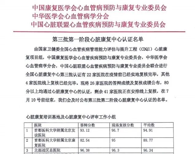 近日,由國家衛(wèi)健委全國心血管疾病管理能力評估與提升工程(CDQI)心臟康復(fù)項(xiàng)目組、中國康復(fù)醫(yī)學(xué)會心血管疾病預(yù)防與康復(fù)專業(yè)委員會、中華醫(yī)學(xué)會心血管病學(xué)分會、中國心臟聯(lián)盟心血管疾病預(yù)防與康復(fù)專業(yè)委員會聯(lián)合進(jìn)行的“全國第三批心臟康復(fù)中心”實(shí)地復(fù)核認(rèn)證工作成績公布。其中: