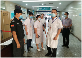 鄧漢東書記指出,目前疫情防控工作依然嚴(yán)峻,醫(yī)院當(dāng)前最重要的防疫工還是“防輸入”, 大家要認(rèn)真執(zhí)行院內(nèi)關(guān)于疫情防控的各項(xiàng)工作制度及流程,堅(jiān)決杜絕院內(nèi)感染。在門診入口,鄧書記對(duì)預(yù)檢分診人員的辛勤付出給予了充分肯定,要求在崗人員除了做好本職工作,還要注意防暑降溫,保障身體健康。