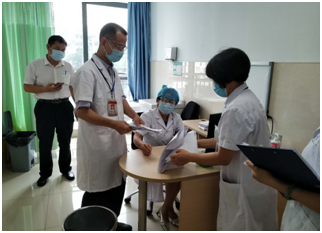 為強(qiáng)化內(nèi)部管理、防止疫情反彈,2020年6月4日上午,惠州市第三人民醫(yī)院黨委書記鄧漢東帶領(lǐng)院辦、護(hù)理部、保衛(wèi)科、院感科、總務(wù)科等職能科室相關(guān)負(fù)責(zé)人,實(shí)地查看了預(yù)檢分診、發(fā)熱門診、各科門診及各重點(diǎn)防疫病區(qū),按照外防輸入、內(nèi)防反彈的防控策略要求進(jìn)行了督導(dǎo)檢查。