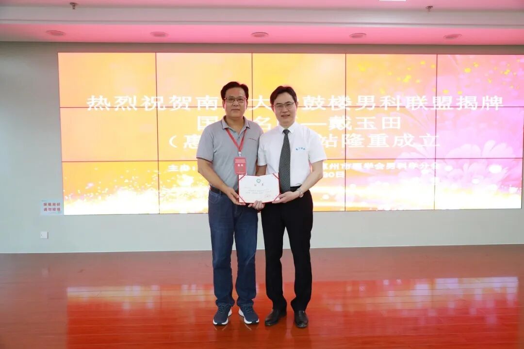戴玉田教授為惠州三院授予“鼓樓男科聯(lián)盟核心成員單位”牌匾