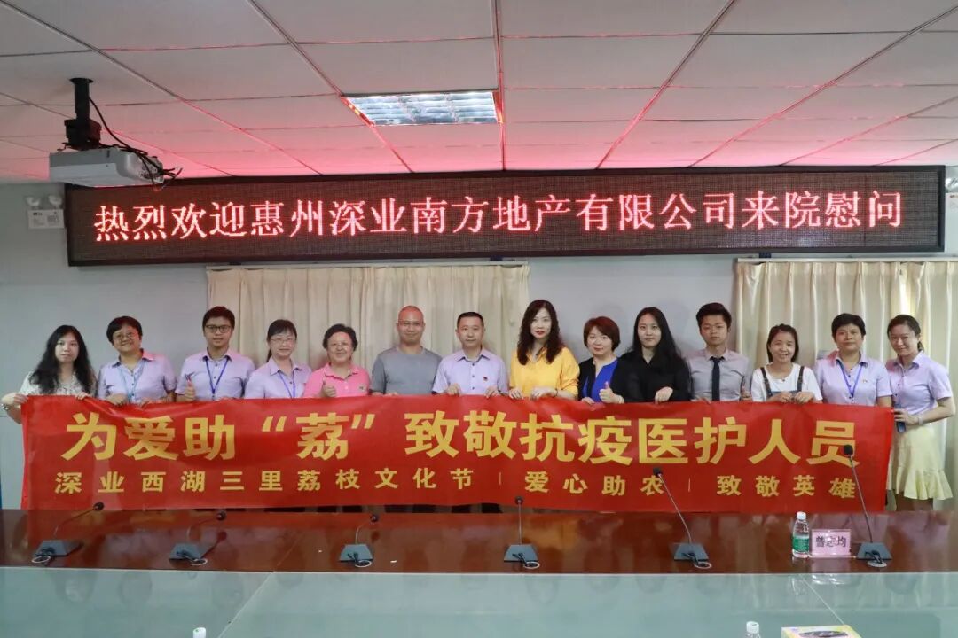 6月22日上午10時(shí),惠州深業(yè)南方地產(chǎn)有限公司及今媒體一行7位帶著清晨新鮮采摘的500斤荔枝風(fēng)塵仆仆地趕來惠州市第三人民醫(yī)院,將“火紅”的敬意獻(xiàn)給一線醫(yī)務(wù)工作者。