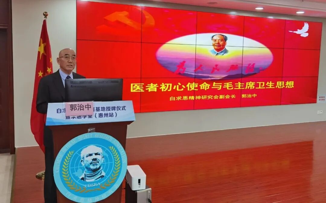 第一課,由白求恩精神研究會副會長郭治中講授,他分享的題目是《醫(yī)者初心使命與毛主席衛(wèi)生思想》,他指出,毛澤東思想對于全社會,特別是廣大醫(yī)務工作者,牢記醫(yī)學使命,扛起醫(yī)學責任,崇尚醫(yī)學品質(zhì),恪盡醫(yī)學操守,為建設健康中國貢獻力量,永做人民幸福的“生命守護神”和“健康好衛(wèi)士”,有著不可替代的重要作用。