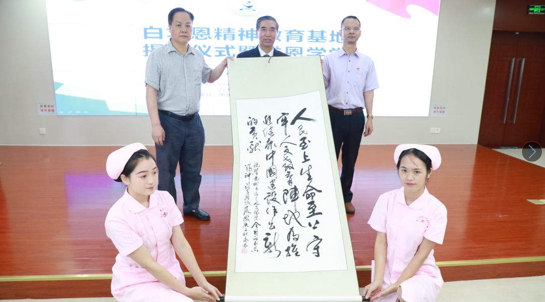 白求恩精神研究會會長袁永林向惠州三院贈送書法題詞