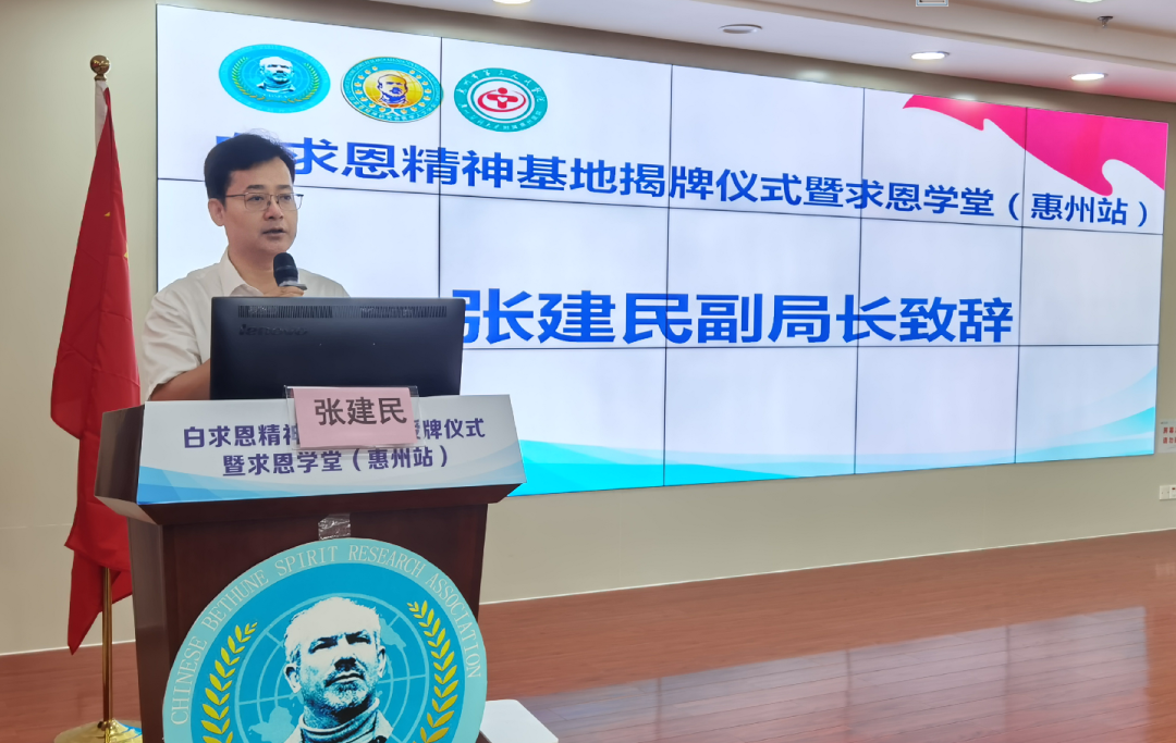 白求恩精神研究會副會長兼執(zhí)行秘書長蔡國軍宣讀關(guān)于成立惠州市第三人民醫(yī)院“白求恩精神教育基地”的批復