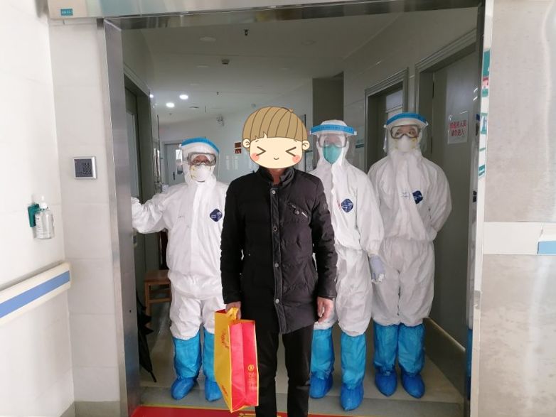 感染科醫(yī)護(hù)人員送康復(fù)患者出院