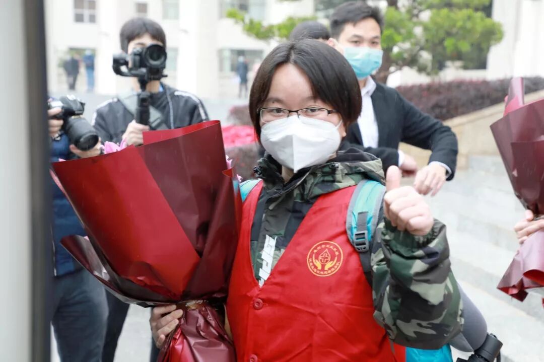 感染科醫(yī)護(hù)人員送康復(fù)患者出院